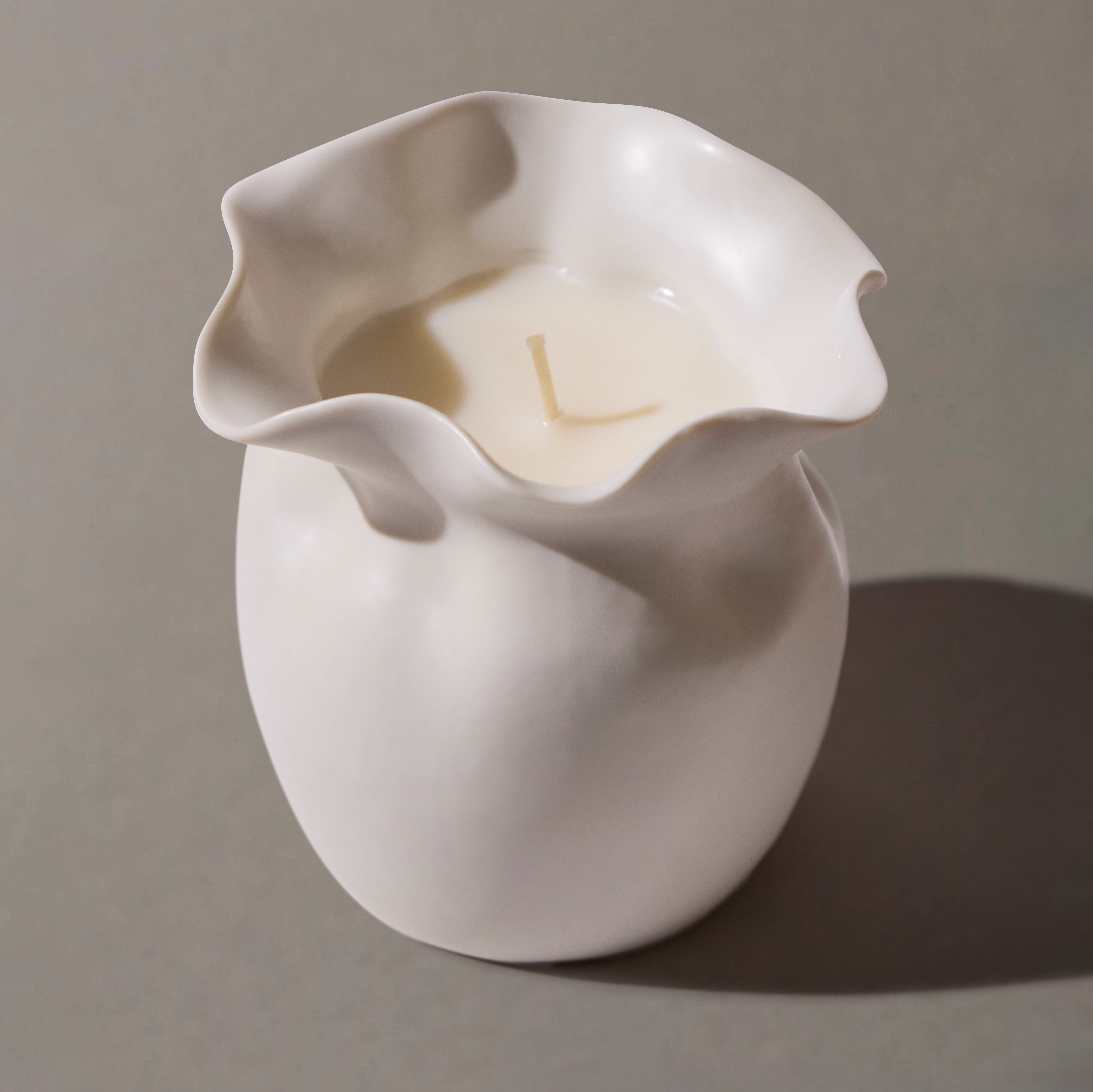 Limited edition collaboration with ceramicist Deborah Brett. A large FESTIVUM candle, housed in a hand-sculpted porcelain vessel with matte White Vellum glaze.